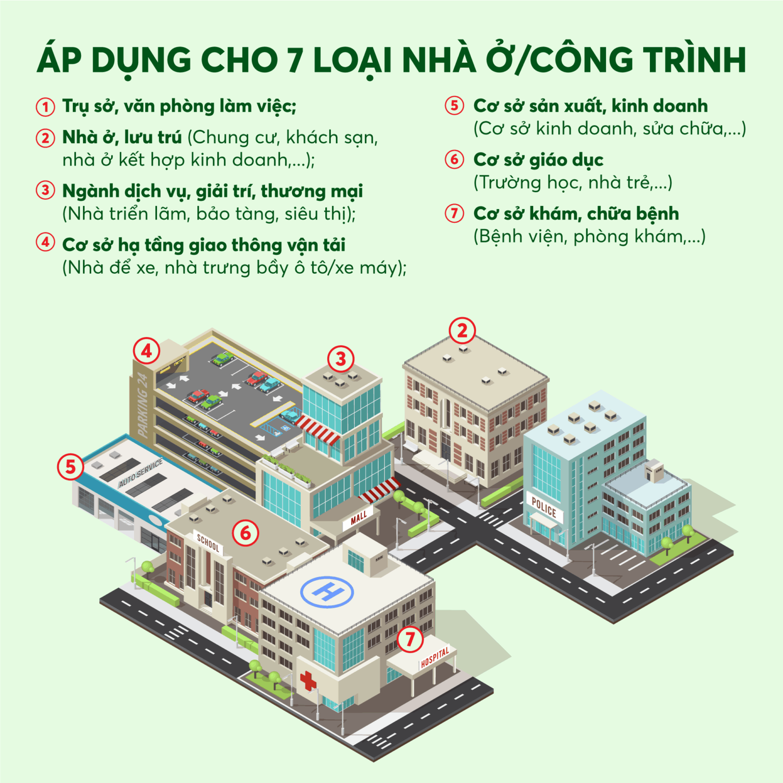 + Từ 5 tầng trở lên hoặc có tổng diện tích sàn từ 1.000 m2 trở lên