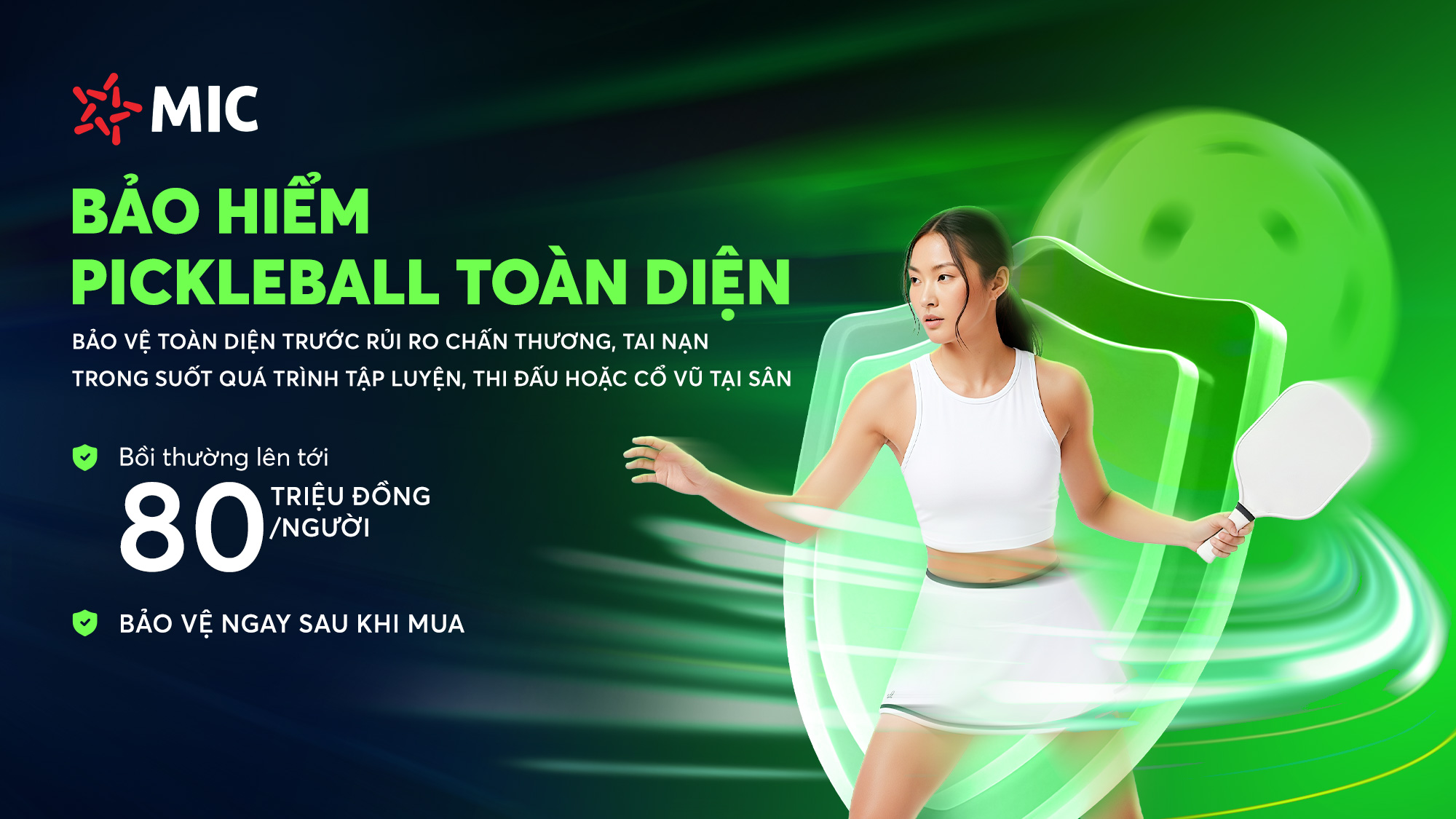 “Bảo hiểm Pickleball toàn diện” là sản phẩm chuyên biệt của Bảo hiểm Quân đội MIC dành cho cộng đồng Pickleball: Bảo vệ toàn diện trước rủi ro chấn thương, tai nạn trong suốt quá trình tập luyện, thi đấu hoặc cổ vũ tại sân. Lựa chọn tối ưu cho người chơi thường xuyên và vận động viên phong trào.